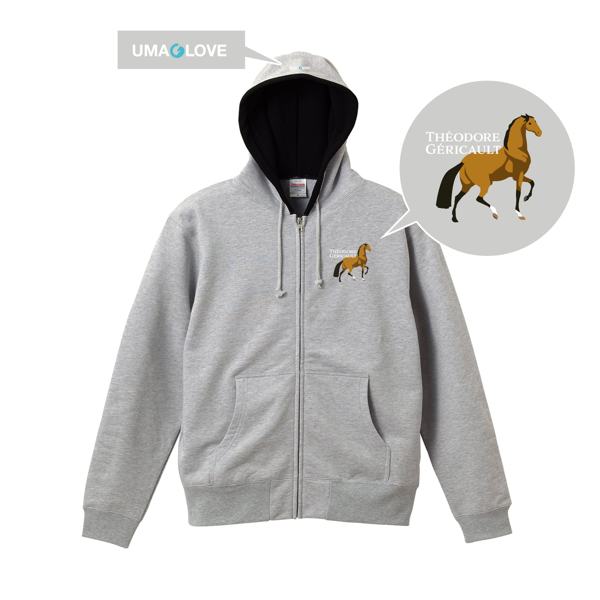 19世紀前半に活動したフランスの画家 テオドール・ジェリコーの油彩画をUMAGLOVE風にアレンジしたパーカーです。