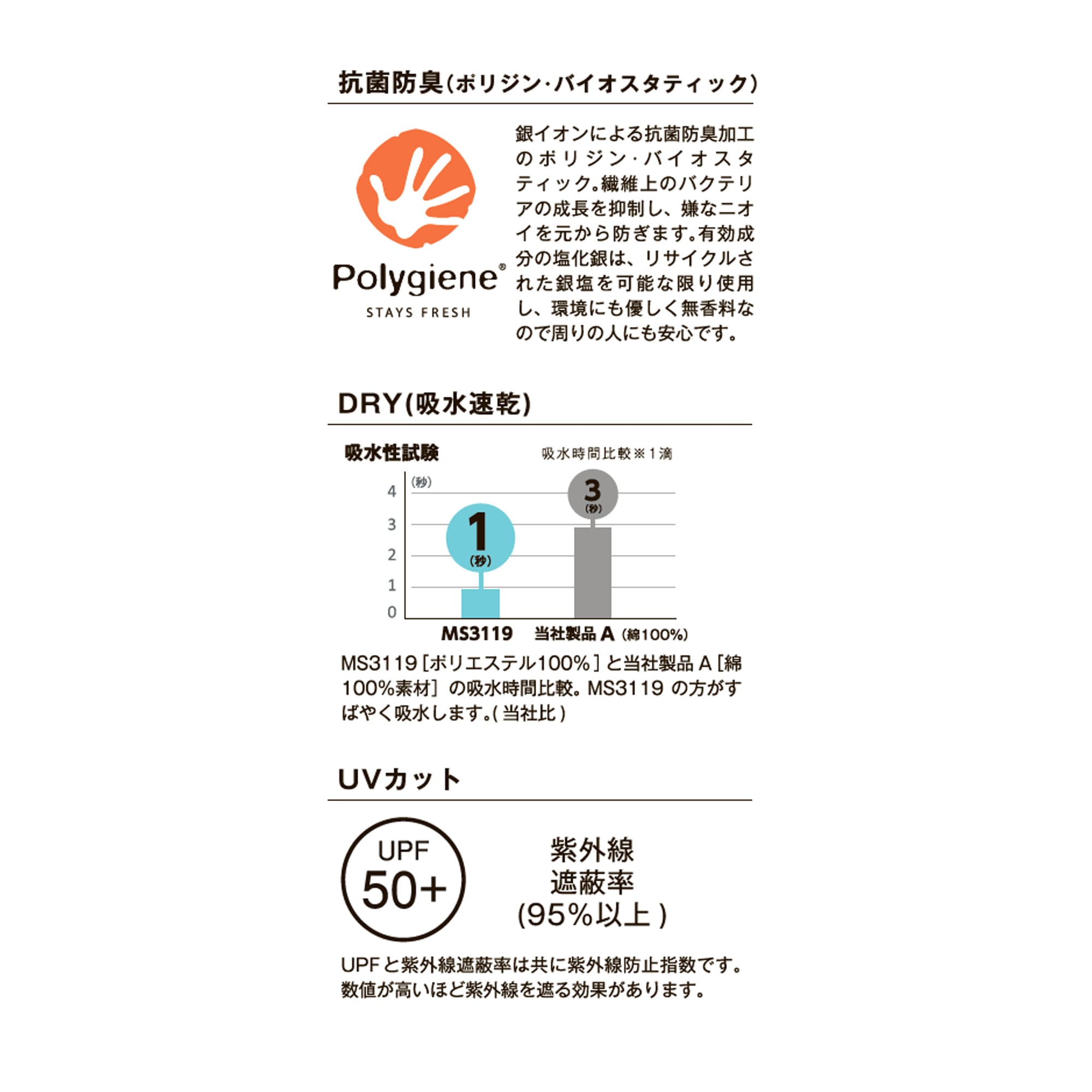 スウェーデン発の抗菌防臭技術 Polygiene® StayFresh(ポリジン・ステイフレッシュ)加工により、汗や部屋干しのニオイを残しません。