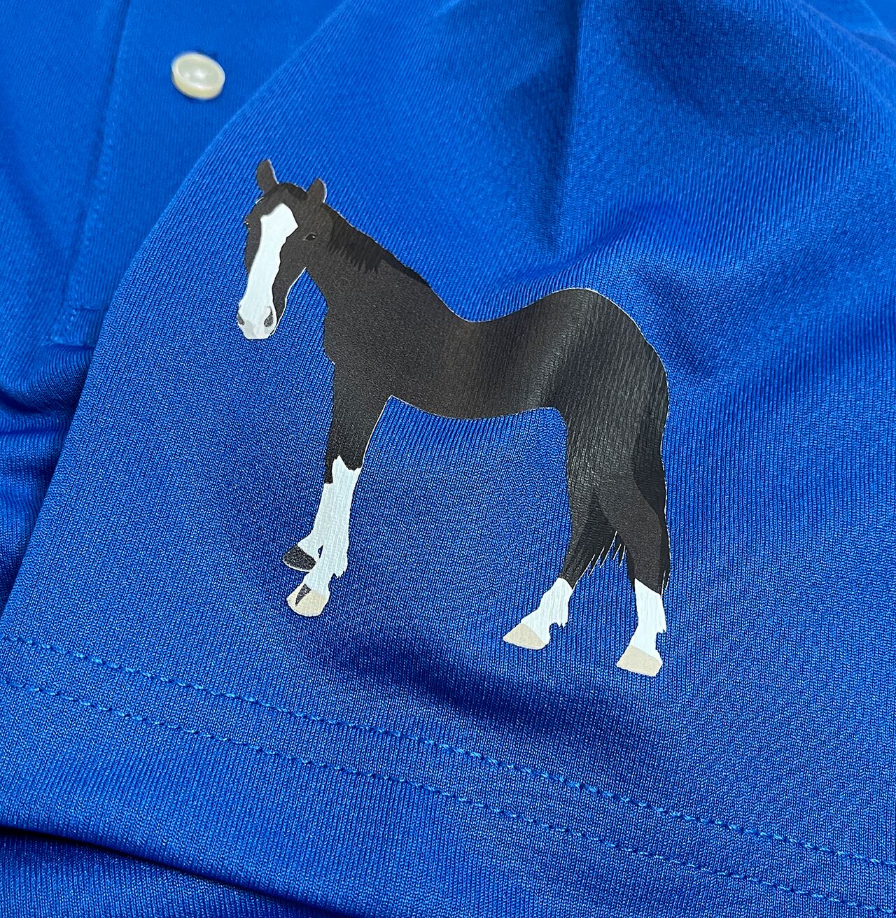 安全ベストを着ていても見える袖部分に馬を配置しました。